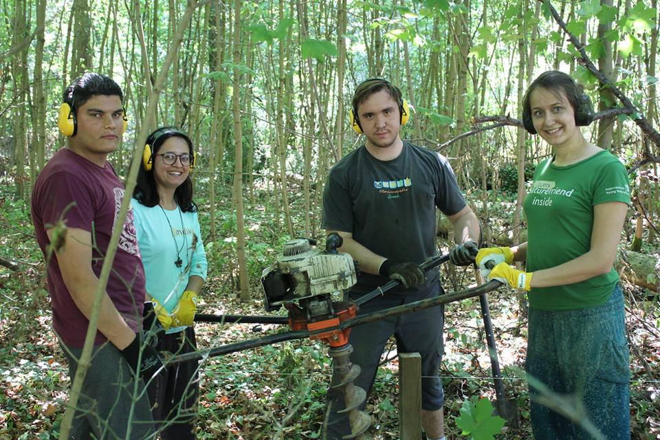 The next days we kept working hard and advancing fast. Every day we had the opportunity to choose which kind of work we would like to do: setting the fence, preparing cement, cleaning the area, painting the Naturefriends logo. This allowed us to see different steps of the work and changing from harder to smoother jobs when it was necessary. Hopefully, most of the time we were working under the trees, where we could enjoy some shadow and lower temperatures. We used signs and mixed words in different languages to communicate and understood each other. Thus, taking multiple breaks for drink and eat, we advanced at determined pace.